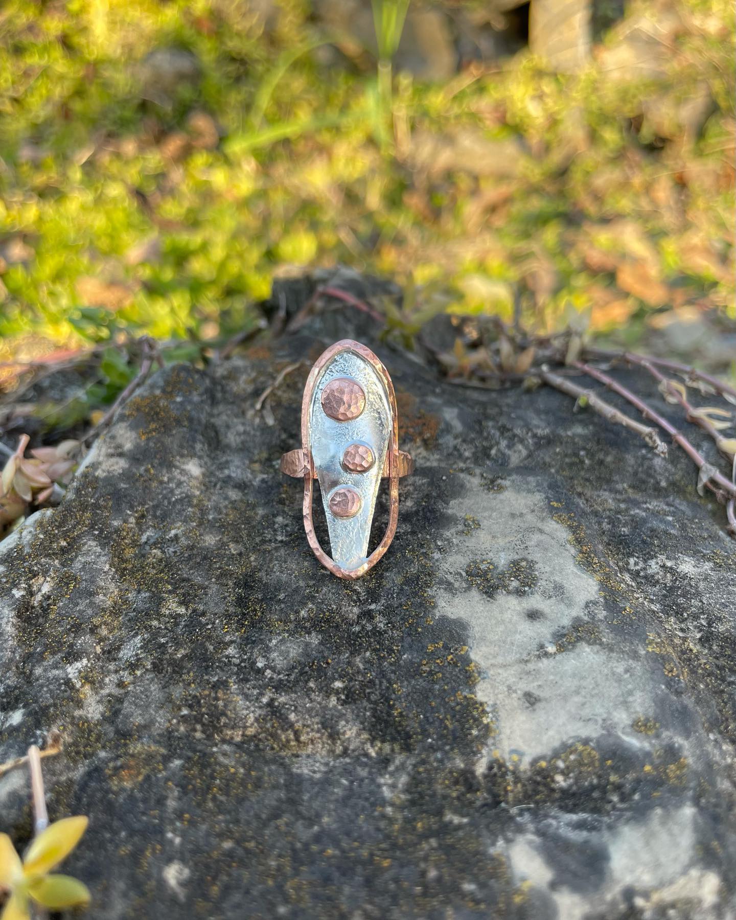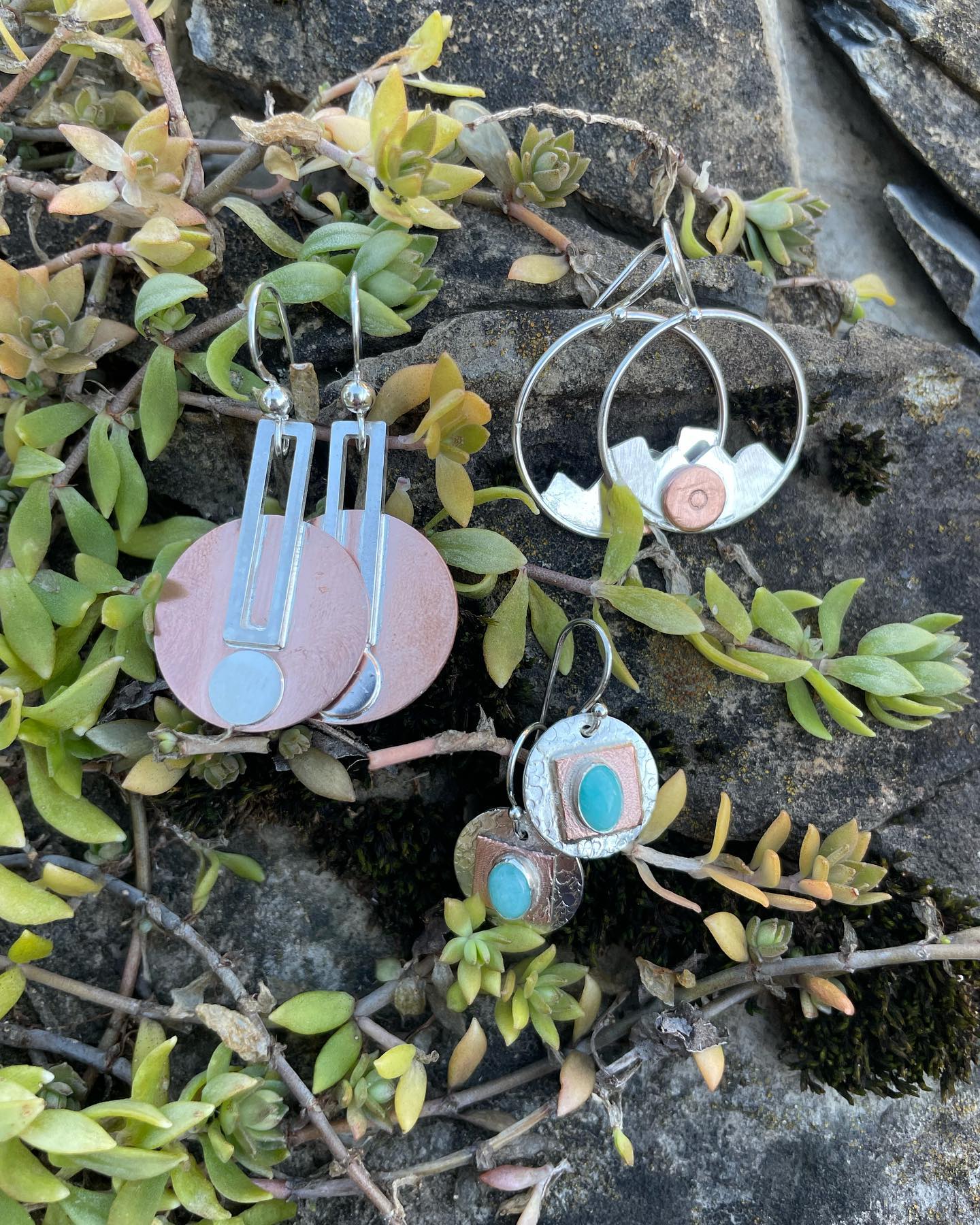 I work in silver, gold, copper, and brass. My work is always evolving. I rarely have a plan when I sit at my bench. I fall in love with a stone or an idea and that drives my design. Having many years of training in dance composition have taught me to trust my creative instinct. This also means that I rarely repeat designs. I enjoy the exploration of possibility with my work.